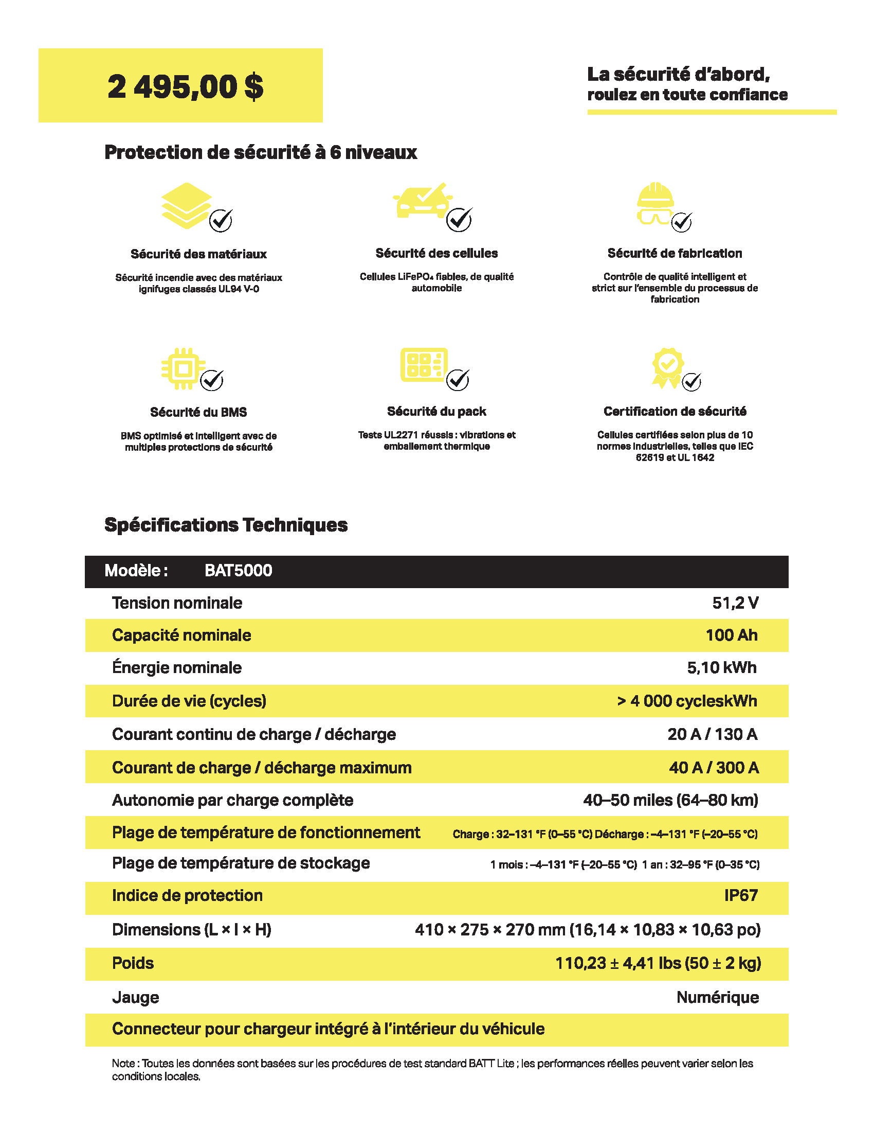 Ensemble complet de batterie Lithium à seulement 2495 $:
